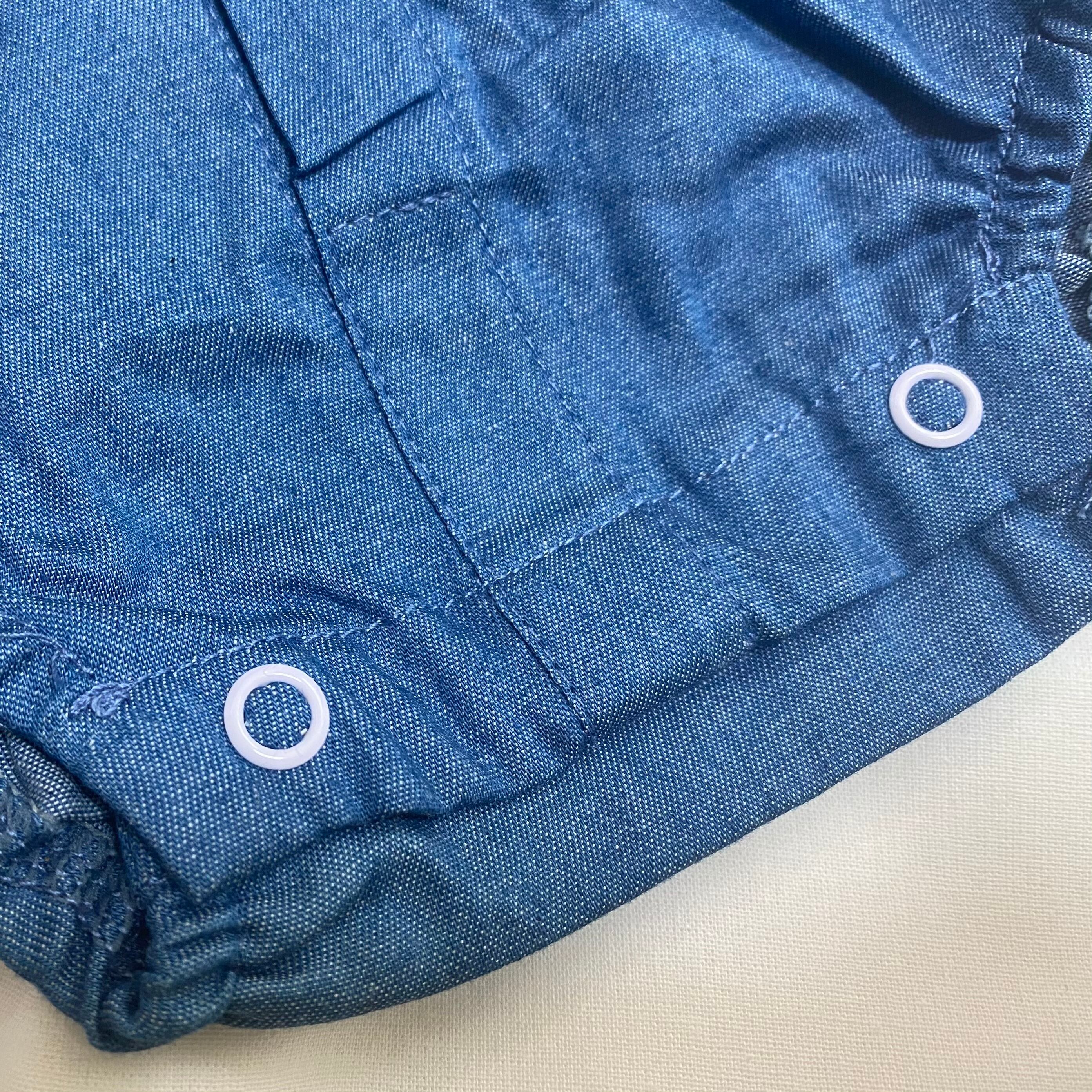 デニム風素材の半袖ロンパース♡