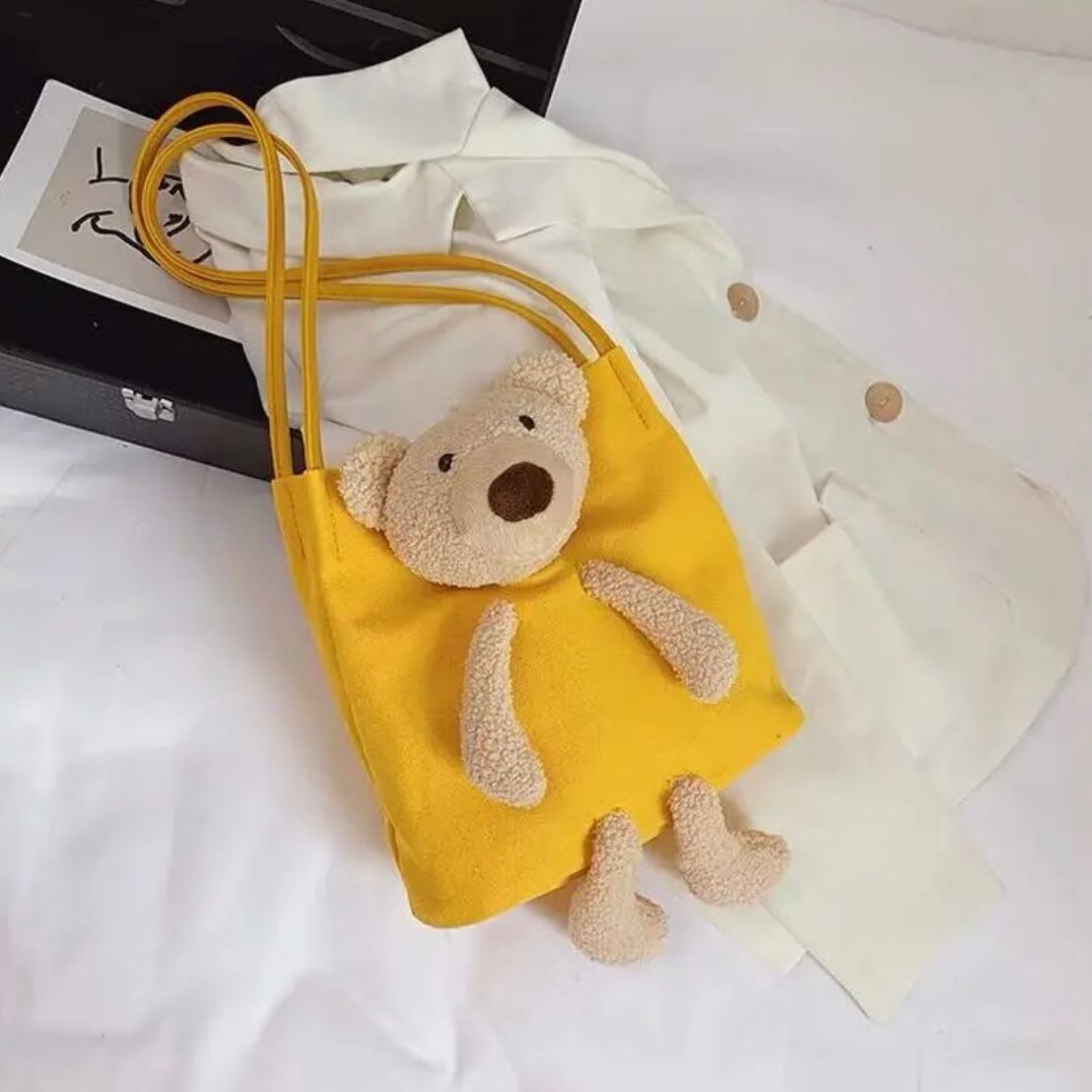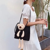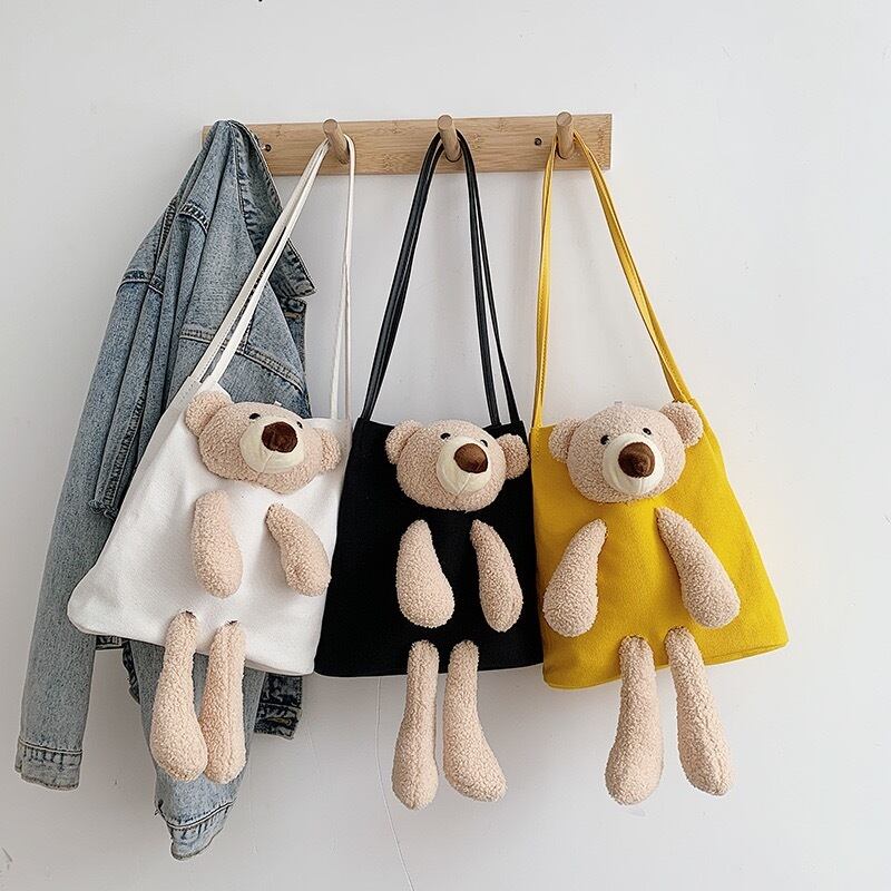 ベビー キッズ ママ くま クマ ぬいぐるみ キャンバス バッグ トートバッグ 春 夏 秋 冬 韓国 オルチャン 原宿 ぷちみえる